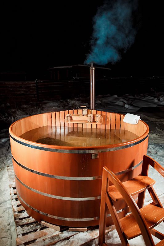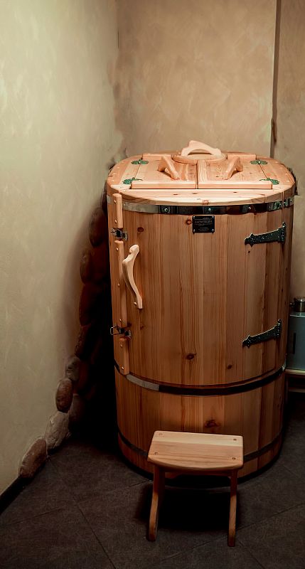 Это купель с круглой внутренней чашей, которая изготовлена из современного прочного и термоустойчивого материала (композита). Форма чаши обеспечивает комфортную посадку внутри изделия. Для удобного использования купель оснащена приставной лестницей. Обручи из нержавеющей стали декорируют купель с композитом и равномерно распределяют нагрузку во время процедур.